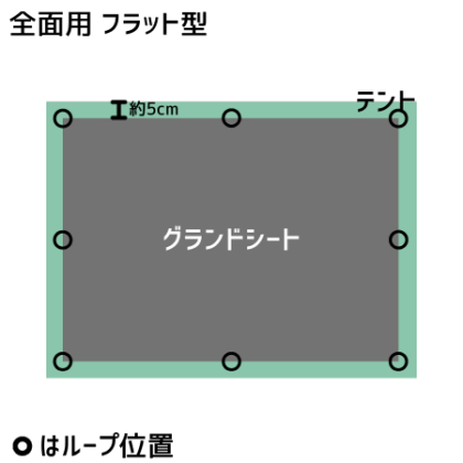 広い1ルームとして使う為のフラット型グランドシートです。