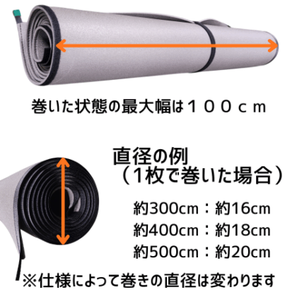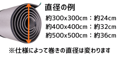 ※300×300は3枚、400×400は4枚、500×500は5枚を重ねて巻いた時のサイズです。